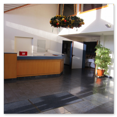 Das ansprechende Erscheinungsbild des Eingangs läd die Gäste und Besucher des Hauses zum Verweilen ein.